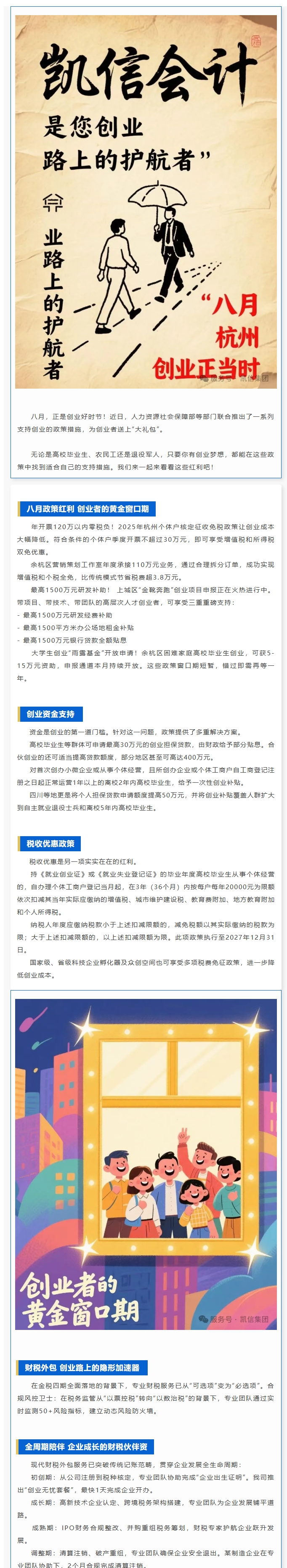 政策红利+财税赋能——八月创业正当时!凯信祝您创业路!